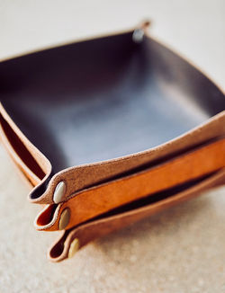Raw leather hides are first sent to the tannery located in the hills of Tuscany, Italy. Before the hides can be dyed, damaged, unusable, and excess material are removed. The hides are then cleaned, shaved, and trimmed before tanning.